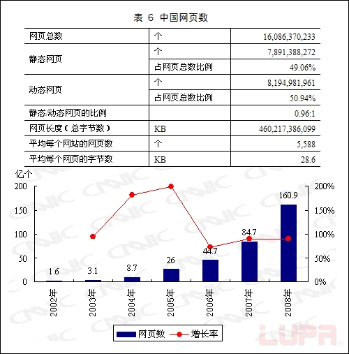 网页是互联网内容资源的直接载体,网页的规模在一定程度上反映了互联网的内容丰富程度。自2002年开始,中国的网页规模一直保持在高位增长。
